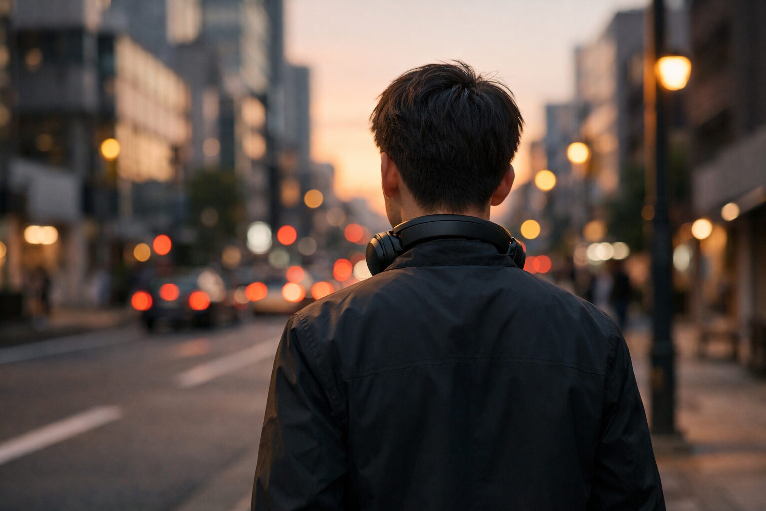 メンズの場合、パーカーやスウェットなどのストリートスタイルには、少し大きめのオーバーイヤー型(耳を覆うタイプ)がよく似合います。逆に、ジャケットやシャツなどのきれいめスタイルには、Ankerのマットブラックのような落ち着いた色味を選ぶと、ガジェット感が薄れて洗練された印象になります。