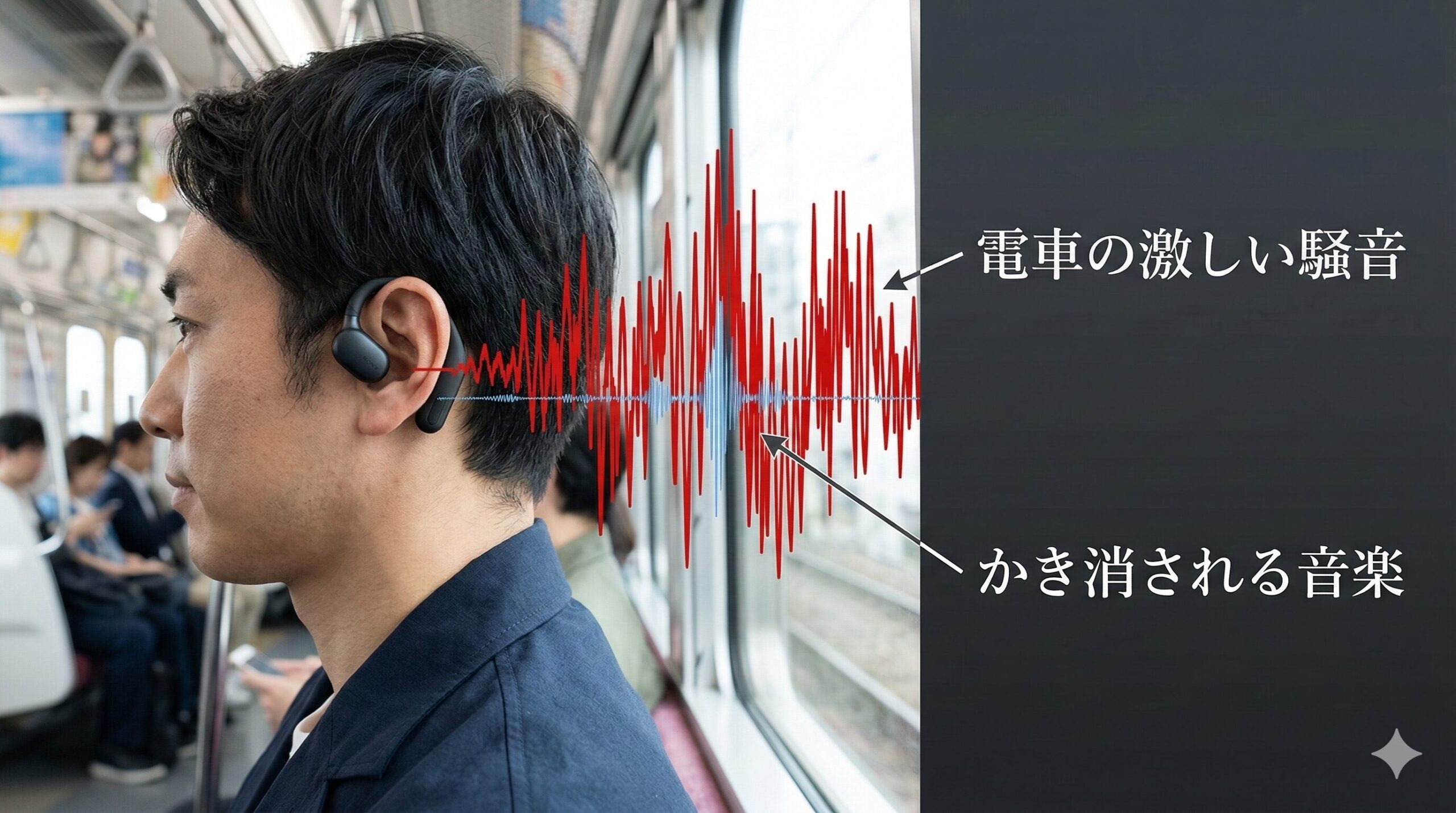 • オープンイヤーイヤホンが電車で聞こえない理由